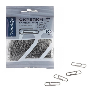 Скрепки овальные, 22мм, без покрытия, Глобус, 100шт, пакет