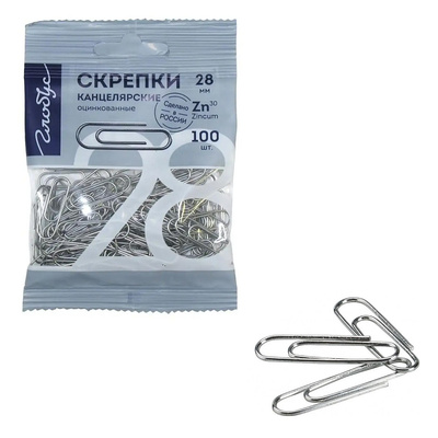 Скрепки овальные, 28мм, оцинкованные, Глобус, 100шт, пакет