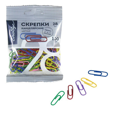 Скрепки овальные, 28мм, цветные, Глобус, 100шт, пакет