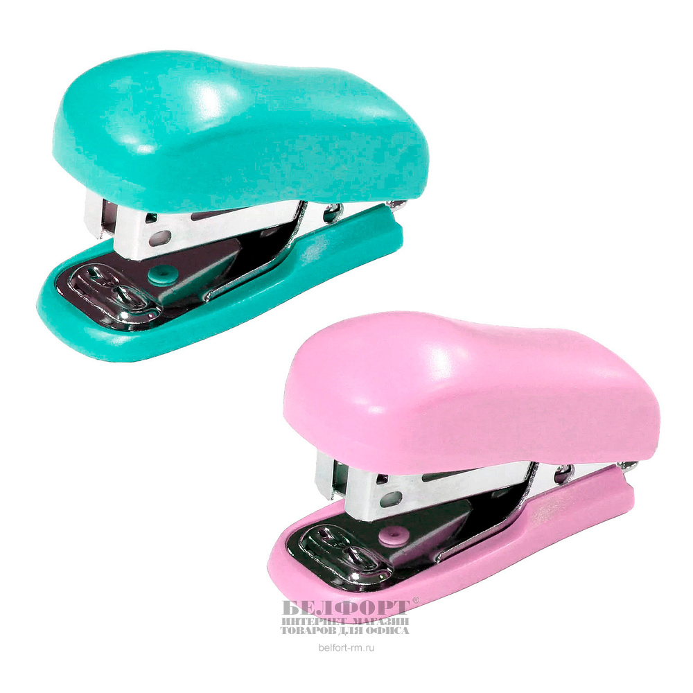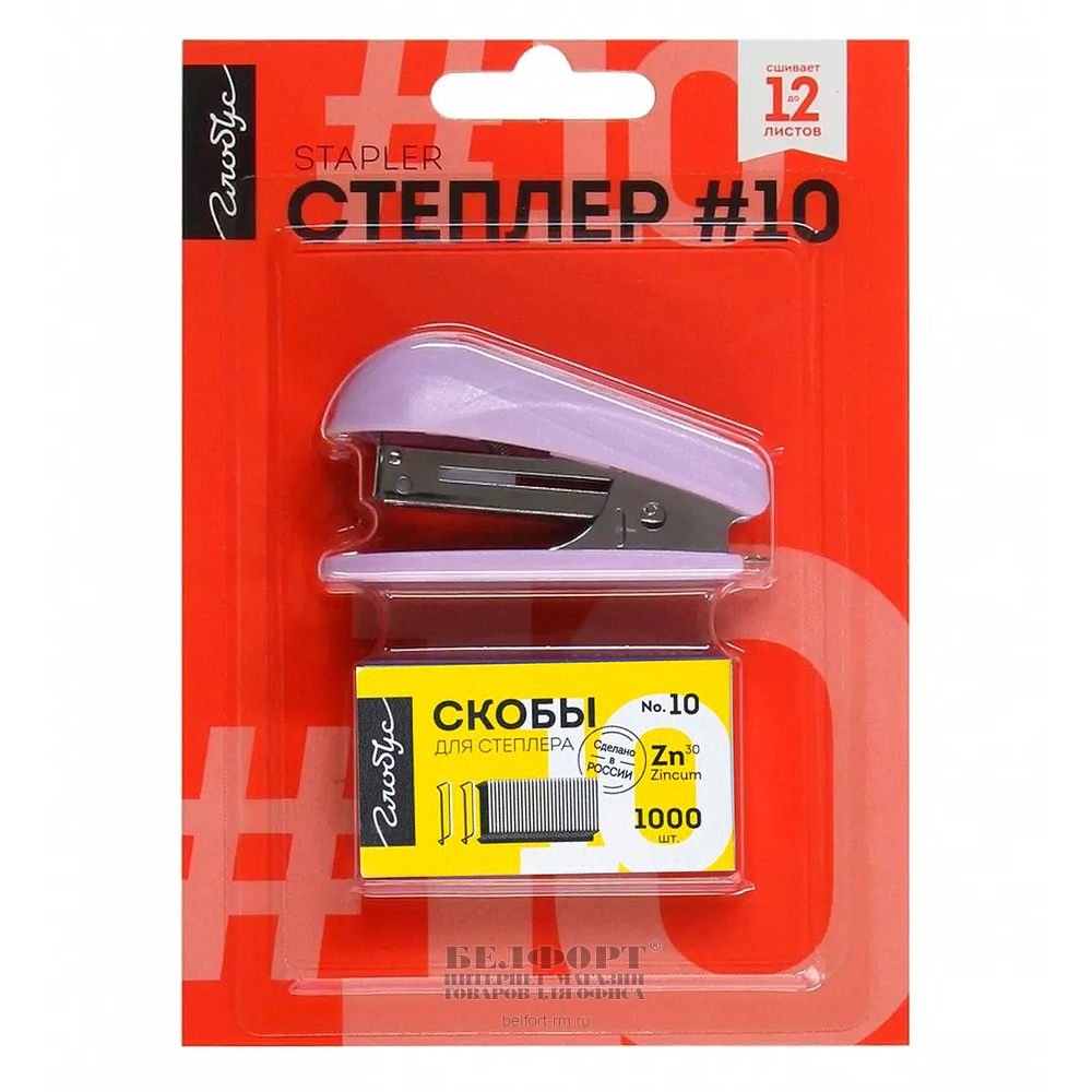 Мини-степлер N10+скобы N10 до 12л, пластик, Глобус, корпус ассорти, с антистеплером, 33мм