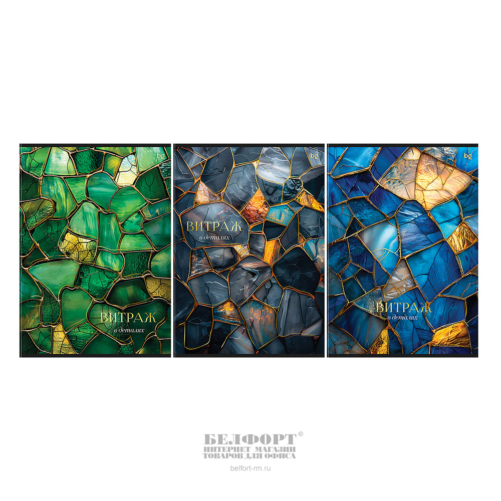 Тетрадь 80л, А4, клетка, с полями, BG, "Витраж", на скрепке, картон мелованный, офсет, ассорти, глянц. лам., тиснение фольгой, 60г⁄м², белизна 100%
