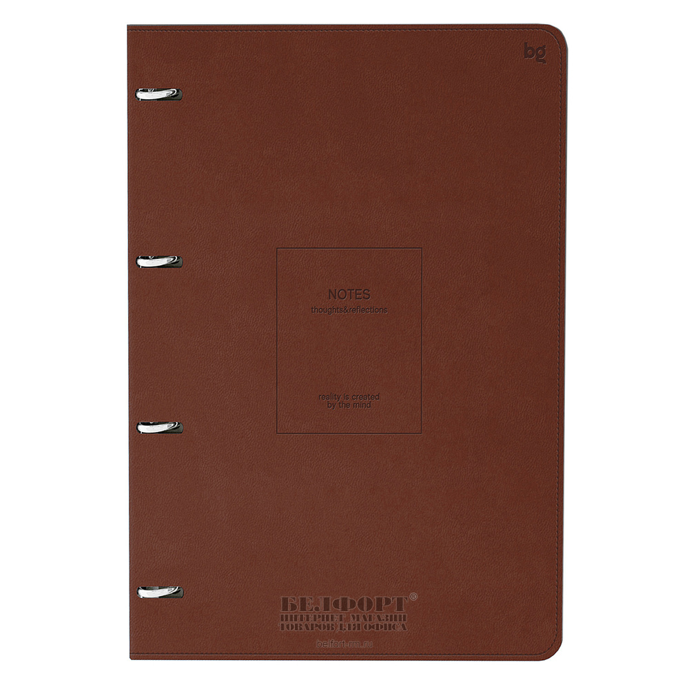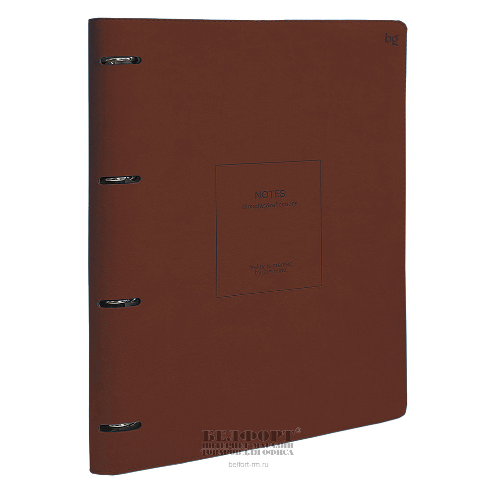 Тетрадь на 4-х кольцах 120л, А4, клетка, без полей, BG, "Моно", "Коричневый", обложка кожзам, коричневая, тонир. блок, гибкая обложка, 70г⁄м²