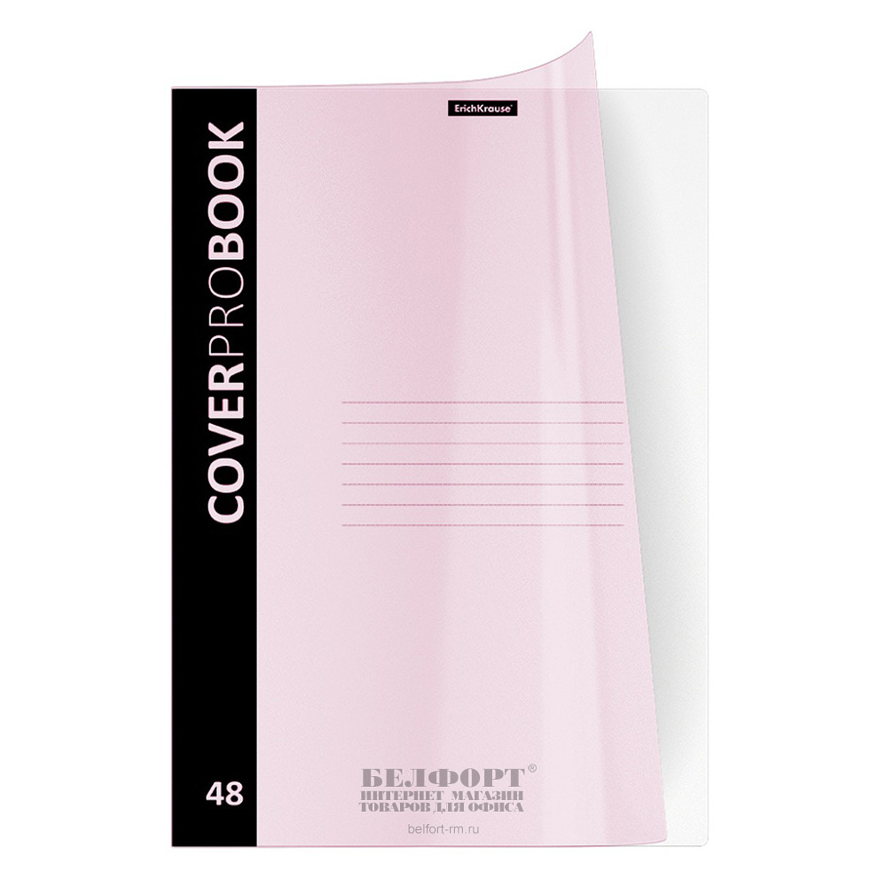 Тетрадь 48л, А4, клетка, с полями, Erich Krause, "CoverProBook", "Пастель (Pastel)", на скрепке, обложка пластик, внутр. блок офсет, розовая, прозрачная, 60г⁄м², б