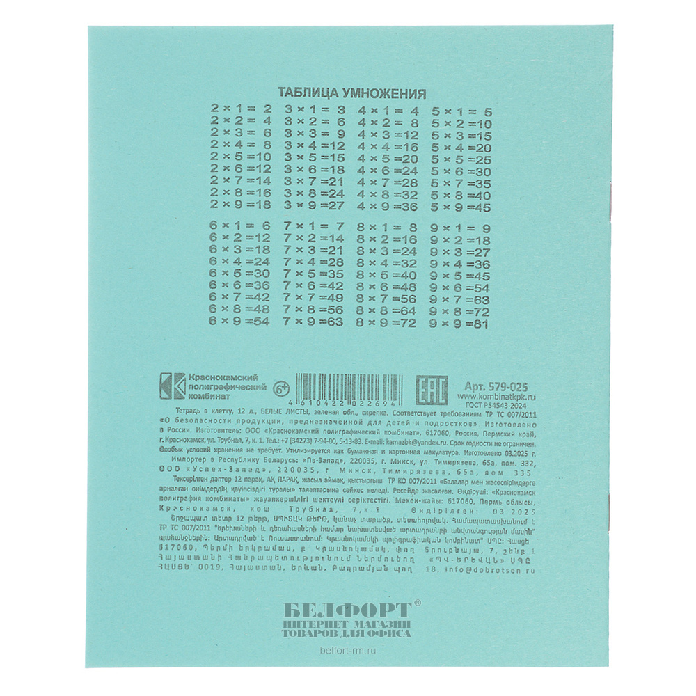 Добавить к сравнению207274Есть в наличии 790 шт.Тетрадь 12л, А5, клетка, Краснокамский полиграфический комбинат, "Блок N2", обложка бумага обложечная, внутр. блок бумага типографская, на скрепке, зеленая, 58