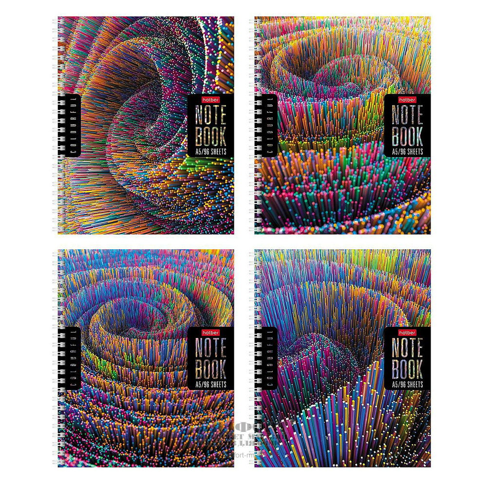 Тетрадь 96л, А5, клетка, без полей, Hatber, "Colorful line", на спирали(гребне), обложка картон мелованный, внутр. блок офсет, ассорти, перфорация на отрыв, мног