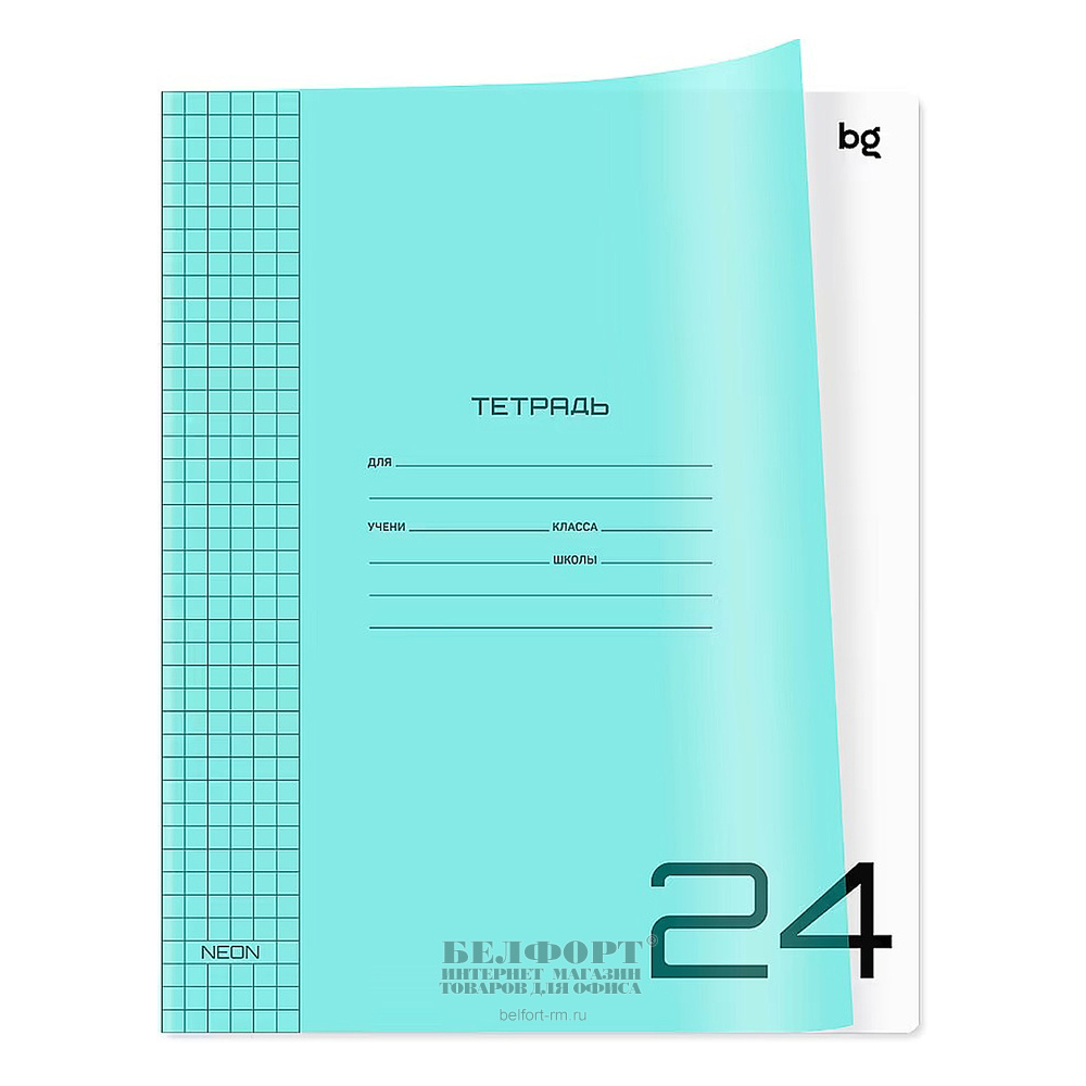 Тетрадь 24л, А5, клетка, BG, "UniTone", обложка пластик, внутр. блок офсет, на скрепке, голубой неон, 60г⁄м², белизна 100%
