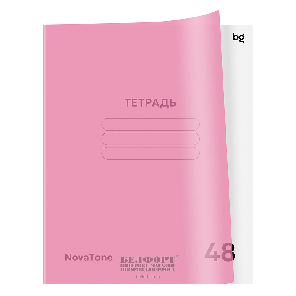 Тетрадь 48л, А5, клетка, с полями, BG, "NovaTone", "Пыльная роза", на скрепке, обложка пластик, розовая, 60г⁄м², белизна 100%