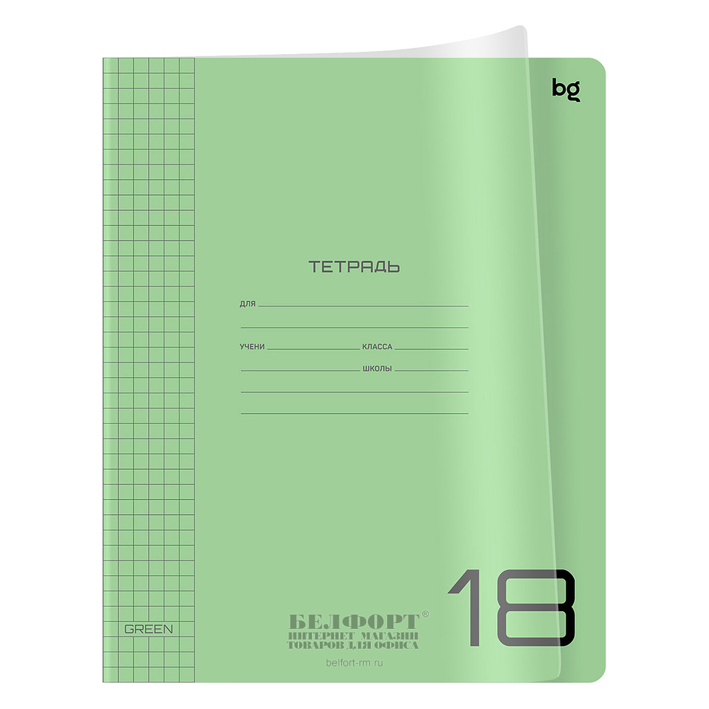 Добавить к сравнению264229Есть в наличии 40 шт.Тетрадь 18л, А5, линия, BG, "Однотонная. Зеленая", обложка пластик, внутр. блок офсет, на скрепке, 60г⁄м², белизна 100%