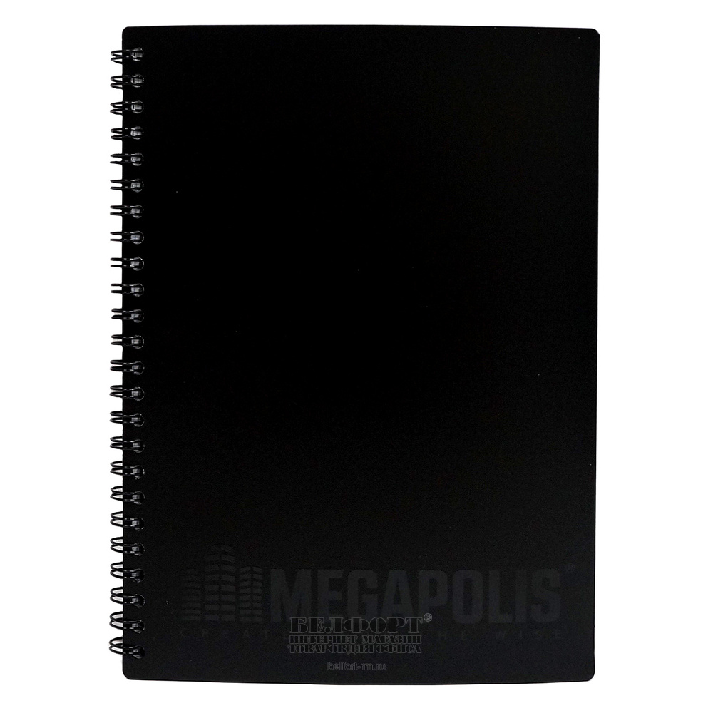 Тетрадь 80л, А5, клетка, без полей, Erich Krause, "Megapolis", на спирали(гребне), пластик+офсет, черная, микроперфорация на отрыв, 70г⁄м², белизна 100%