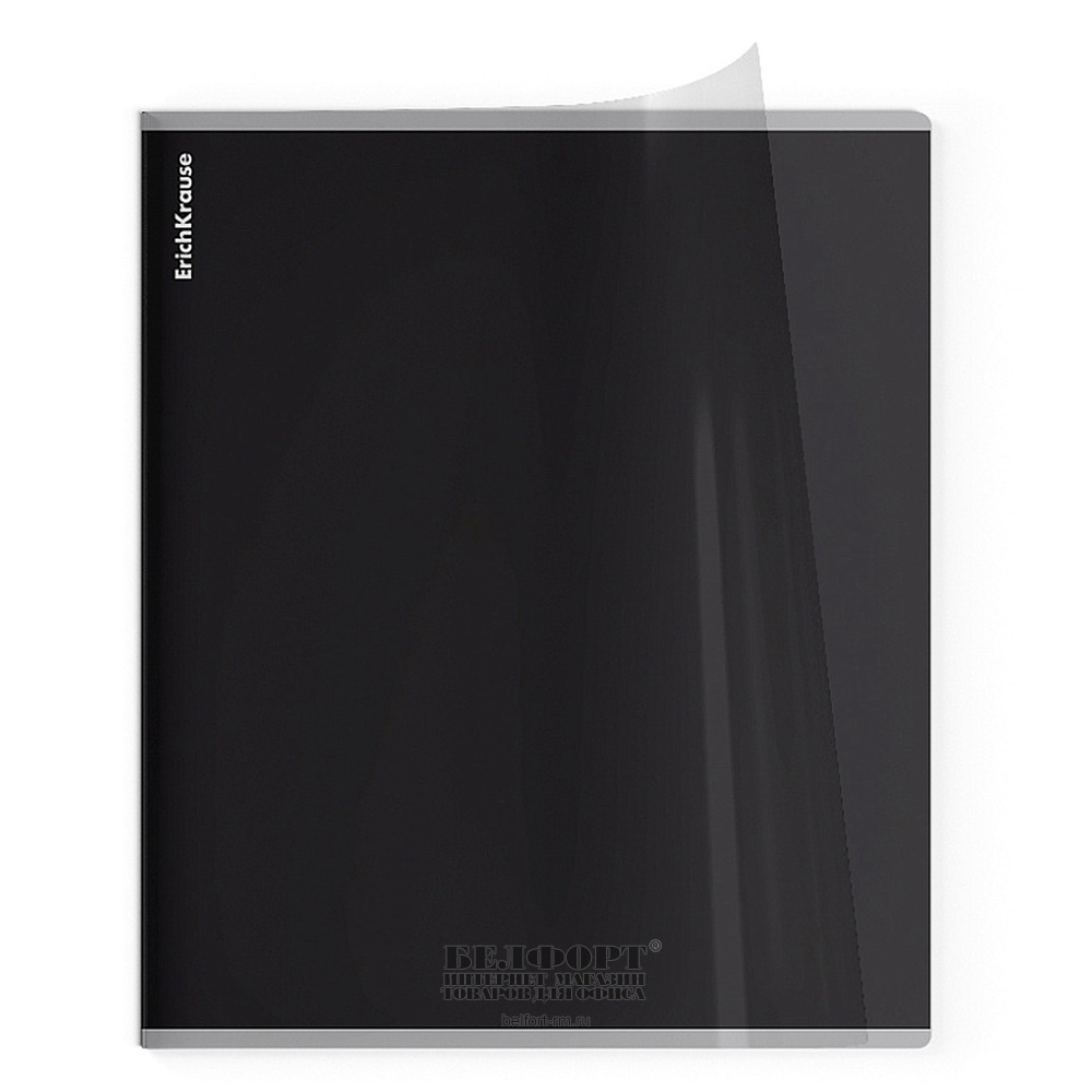 Тетрадь 48л, А5+, клетка, с полями, Erich Krause, "CoverPrо", "Текстура апельсин. Штормовой", на скрепке, обложка пластик, внутр. блок офсет, антрацит, скругленн