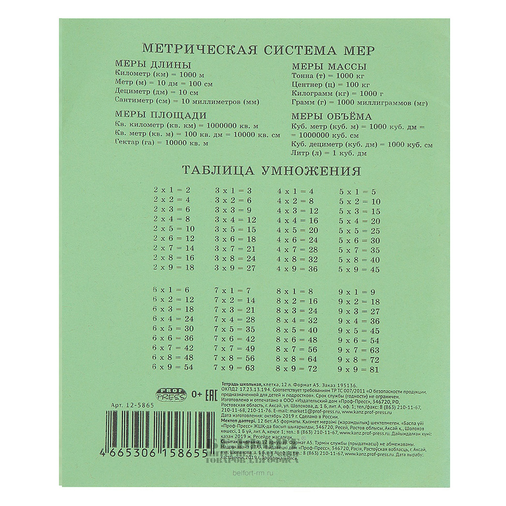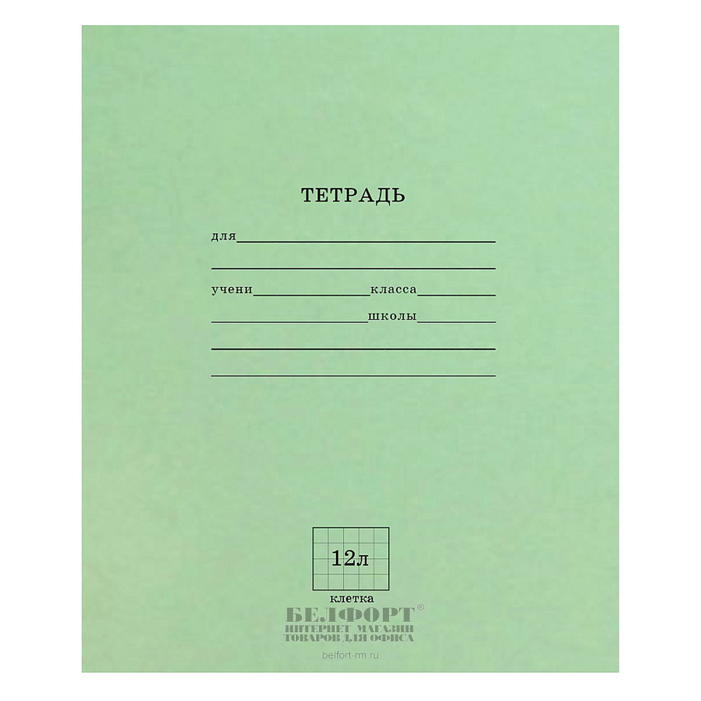 Тетрадь 12л, А5, клетка, Prof-Press, "Стандарт", обложка бумага обложечная, внутр. блок офсет, на скрепке, зеленая, 60г⁄м², белизна 100%