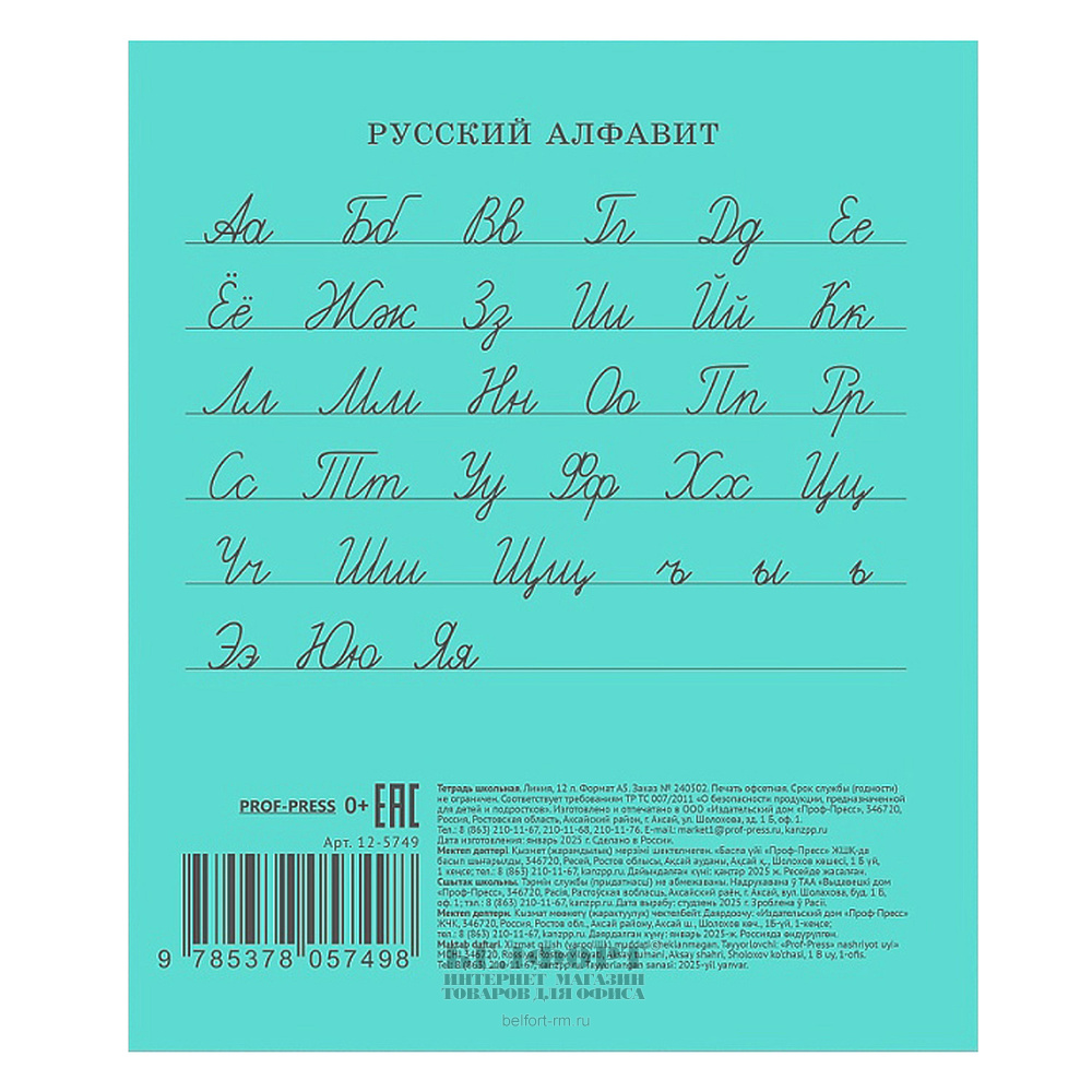 Тетрадь 12л, А5, линия, Prof-Press, "Стандарт", обложка бумага обложечная, внутр. блок офсет, на скрепке, 60г⁄м², белизна 100%