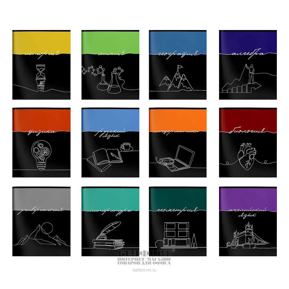 Комплект тематических тетрадей 12шт, 48л, А5, клетка, линия, с полями, SchoolФормат, "Горизонт событий", на скрепке, картон мелованный, 60г⁄м²