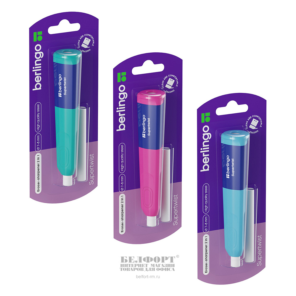 Точилка с контейнером с ластиком, пластик, Berlingo, "Supertwist", ассорти, 21мм, 110мм, 21мм, одно отверстие