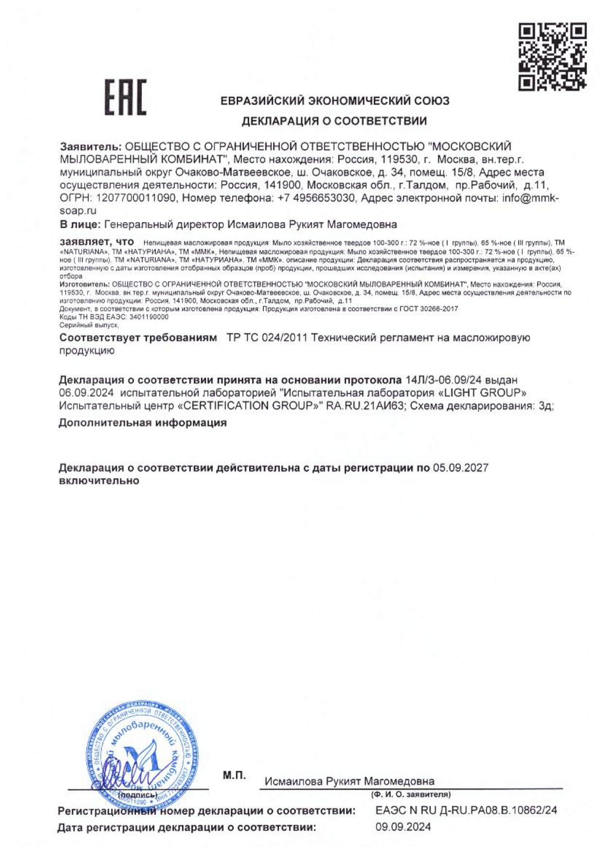 Мыло хозяйственное жирность 72%, ММК, 200г, без обертки