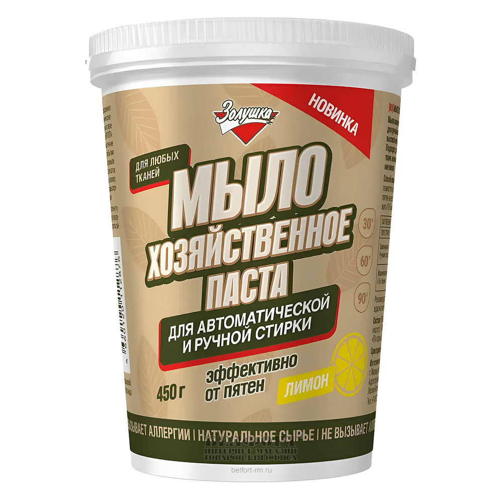 Мыло хозяйственное паста Золушка, "Лимон", 450г, для всех типов стирки, для любых тканей