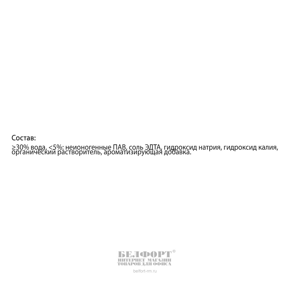 Состав: вода очищенная, поверхностно-активные вещества, органический растворитель, гидроксид натрия, комплексообразователи, краситель, ароматизатор.