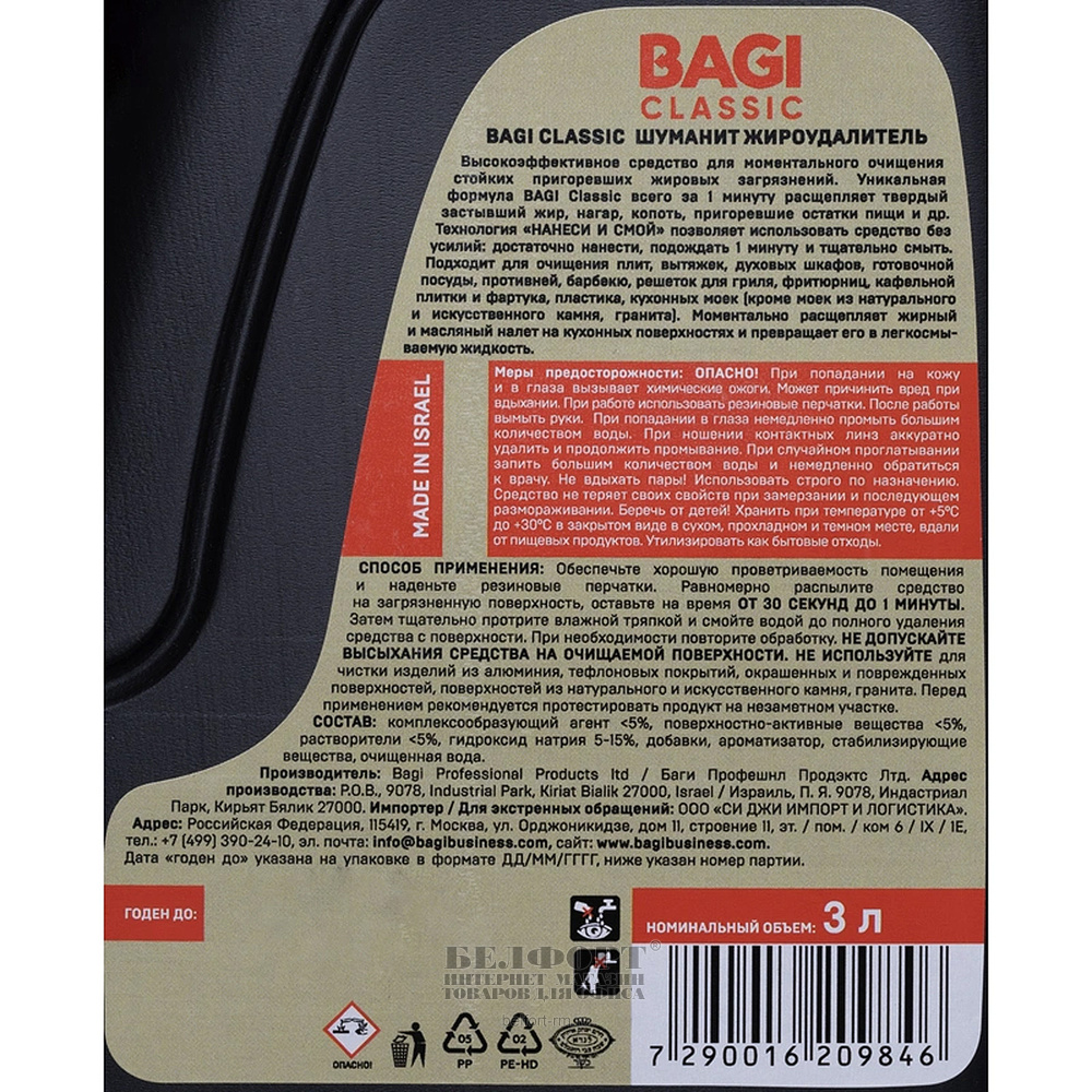 Чистящее средство Bagi, "Шуманит. Классик (Classic)", для духовок и плит, 3л, канистра