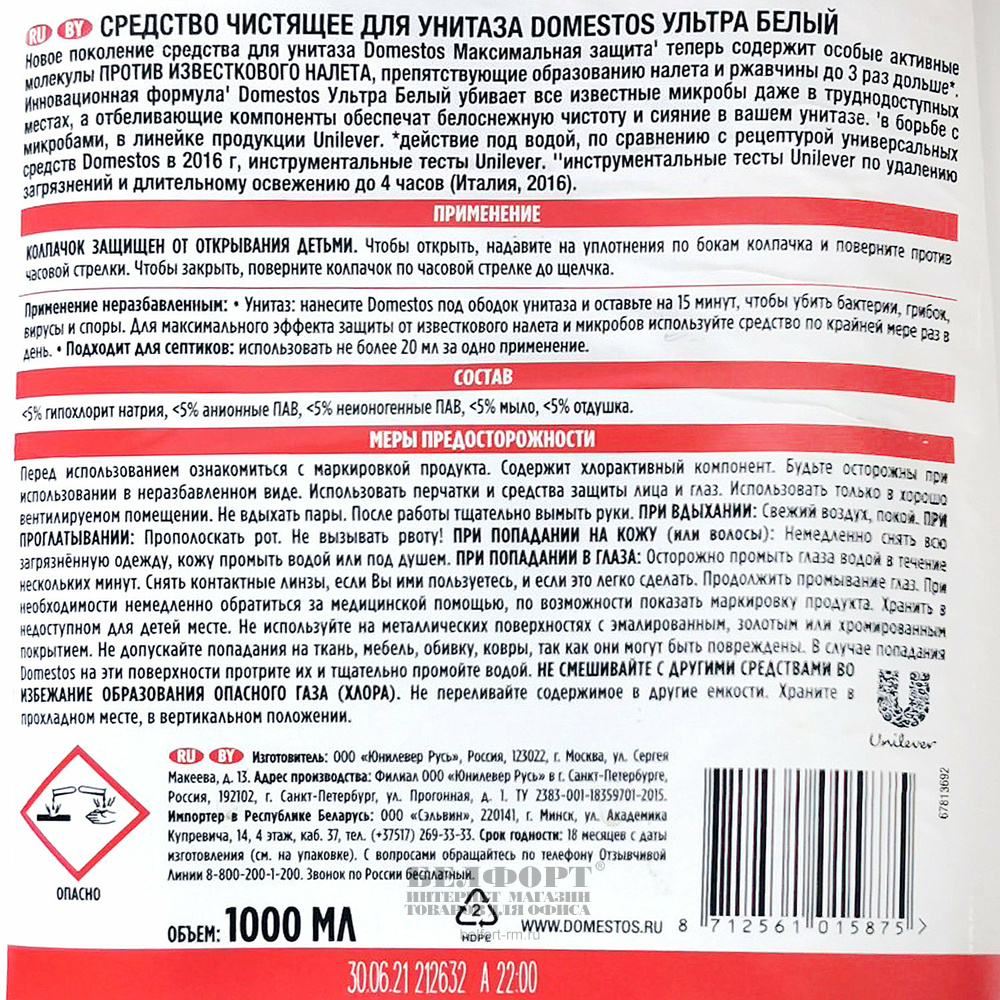 Чистящее средство универсальное, от налета и ржавчины, Domestos, "Ультра Белый", 500мл, флакон, крышка с носиком, гель