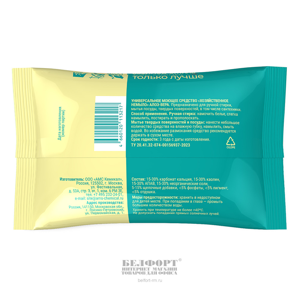 Моющее средство Золушка, "Хозяйственное НЕМЫЛО", "Алоэ-вера", 200г, без животных жиров на основе ПАВ и мягкого абразива