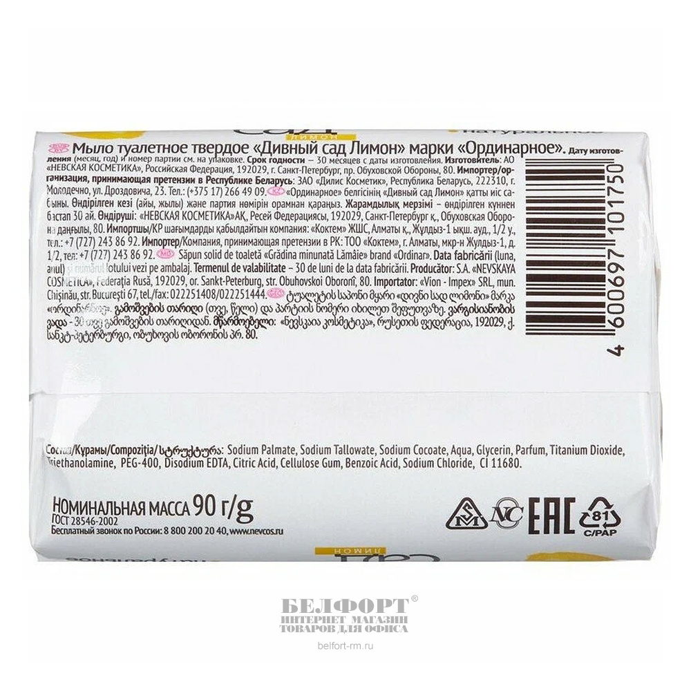 Мыло туалетное Дивный сад, "Лимон", 90г