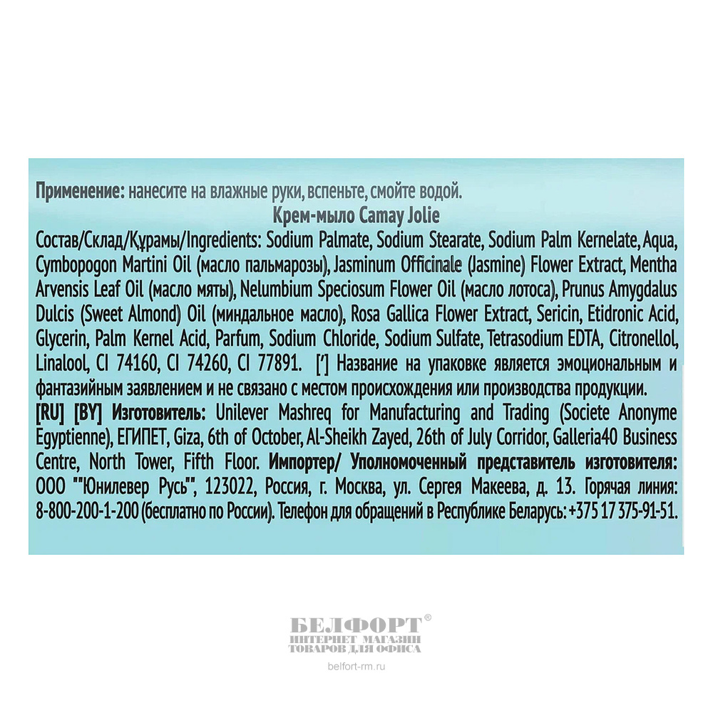 Мыло туалетное Camay, "Jolie. Акватика", "Увлажнение 4 масел", "Розовый грейпфрут", 85г