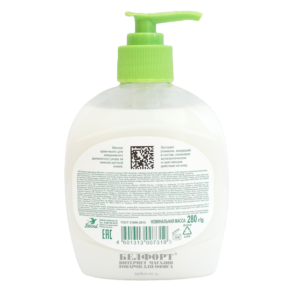 Жидкое крем-мыло 280мл, Весна, "С экстрактом ромашки", "Детское", дозатор
