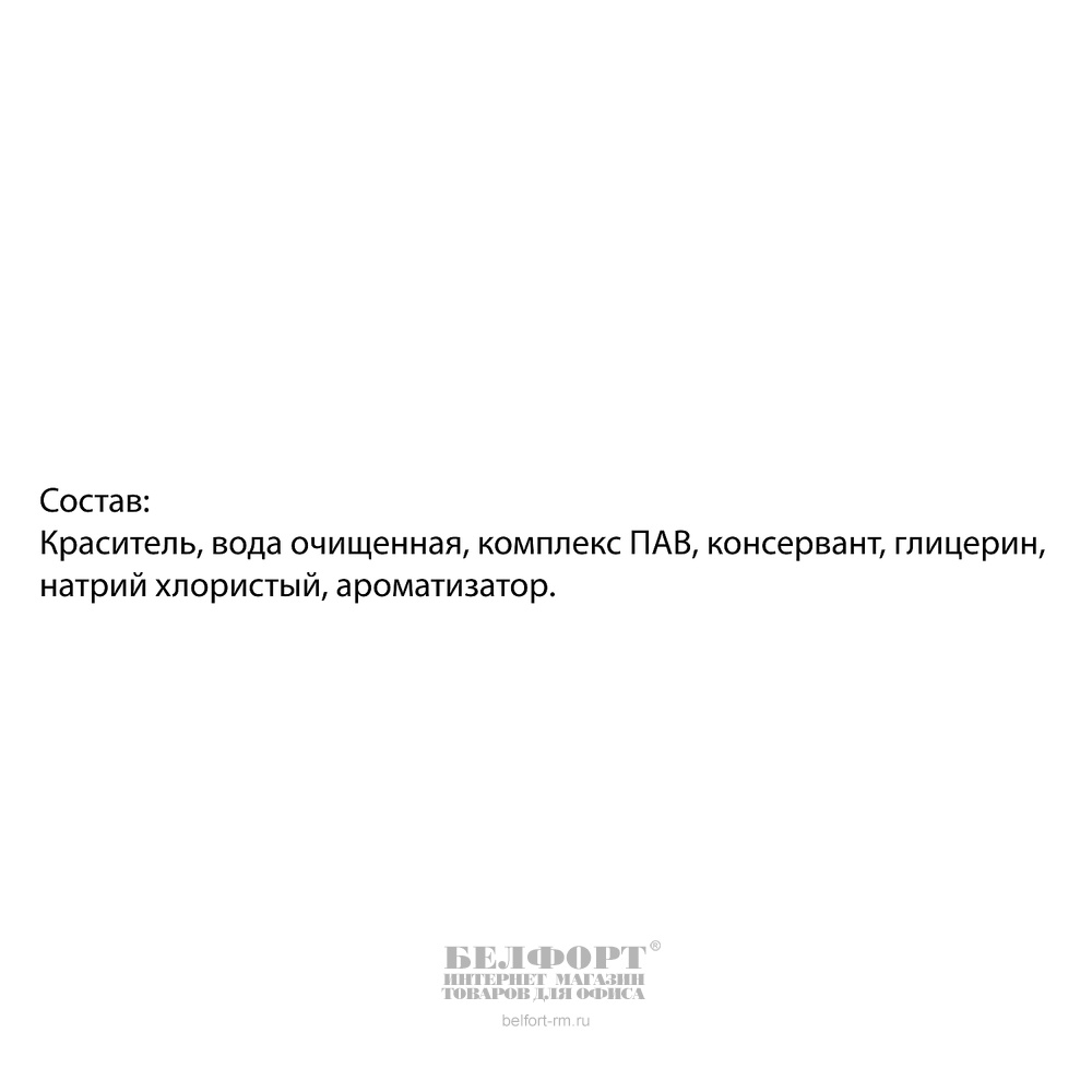 Состав: вода очищенная, комплекс ПАВ, натрий хлористый, глицерин, консервант, ароматизатор, краситель.