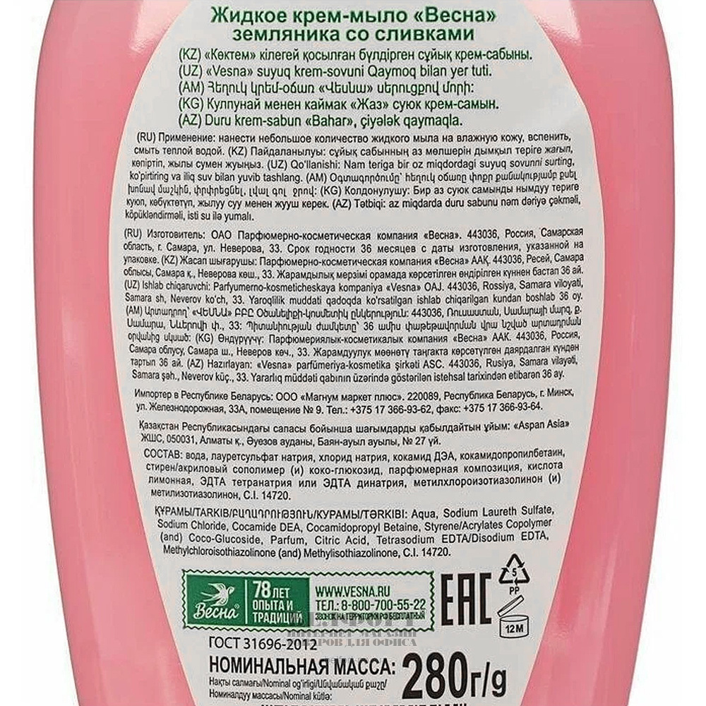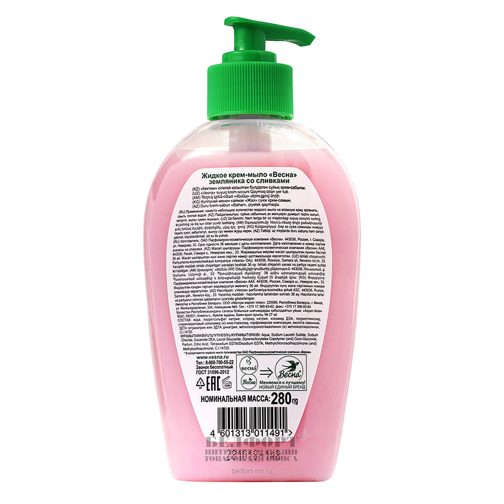 Жидкое крем-мыло 280мл, Весна, "Алоэ и овсяное молочко", дозатор