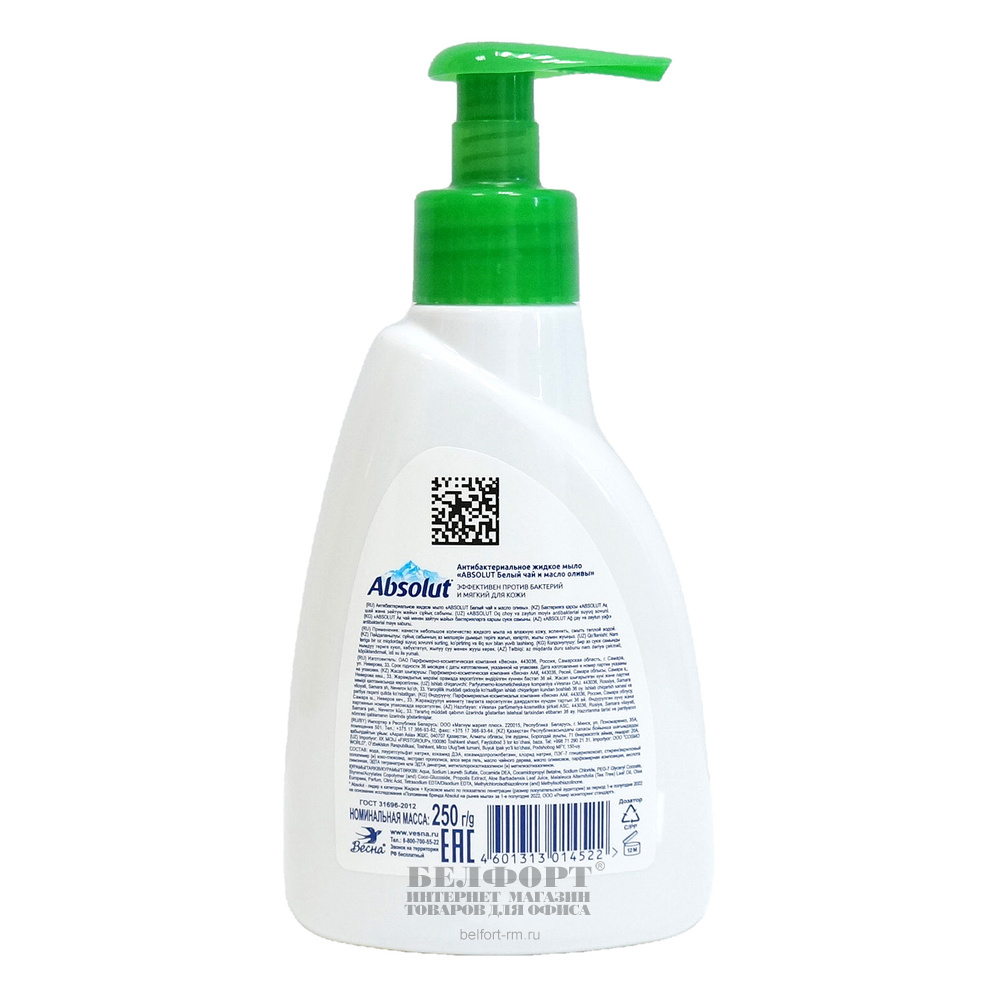 Жидкое крем-мыло 250мл, Absolut, "Белый чай", "Антибактериальное", дозатор