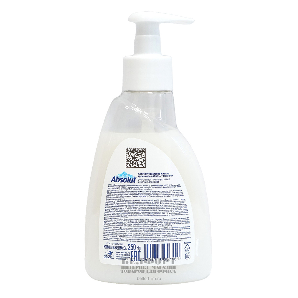 Жидкое крем-мыло 250мл, Absolut, "Нежное. Антибактериальное", дозатор