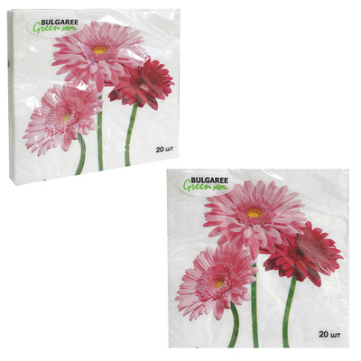Добавить к сравнению254479Есть в наличии 1 уп.Салфетка 3-слойн., 20шт, Bulgaree Green, "Пионы", 33см*33см, целлюлоза