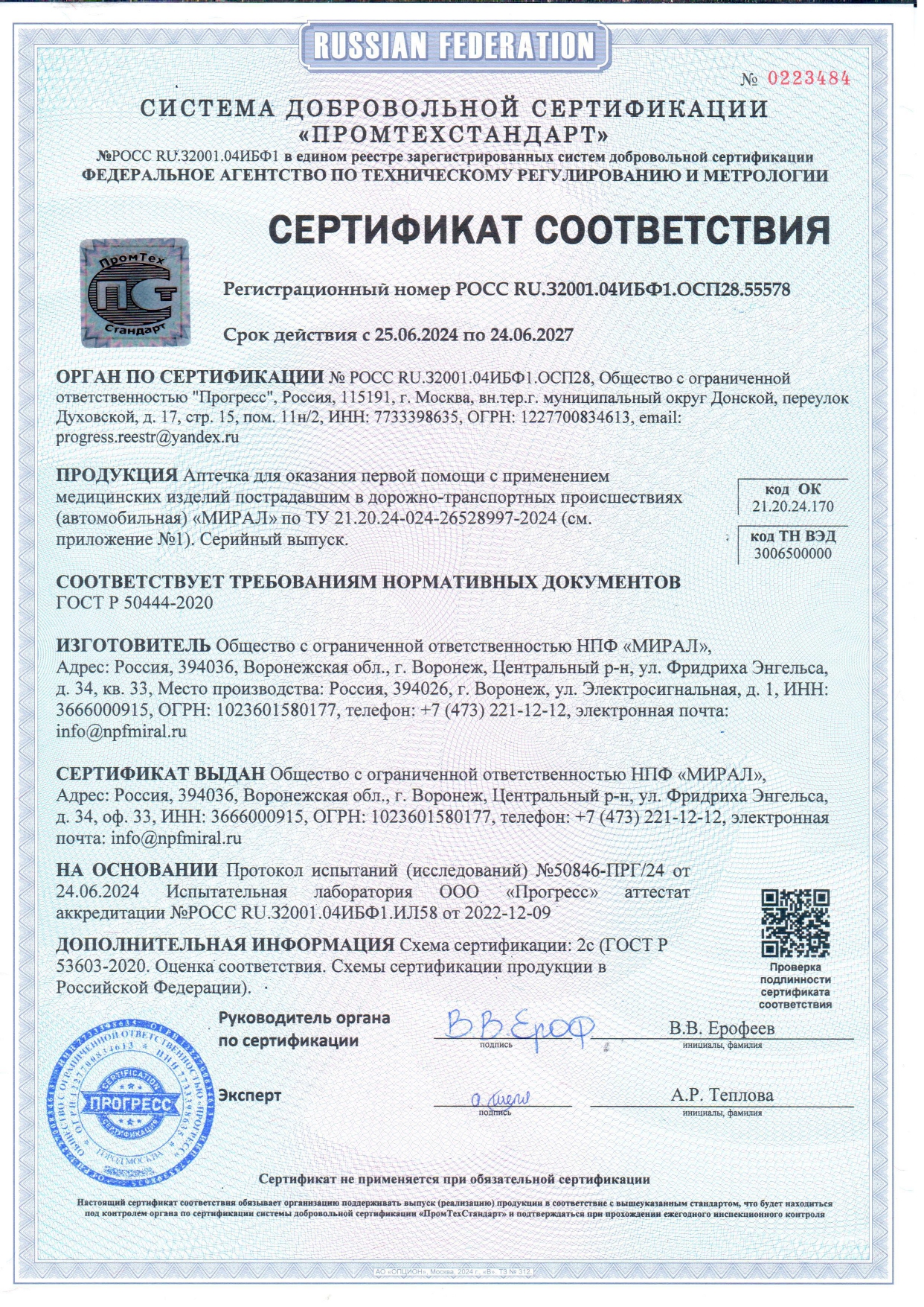Аптечка автомобильная, Мирал, пластик, состав по приказу N 260н