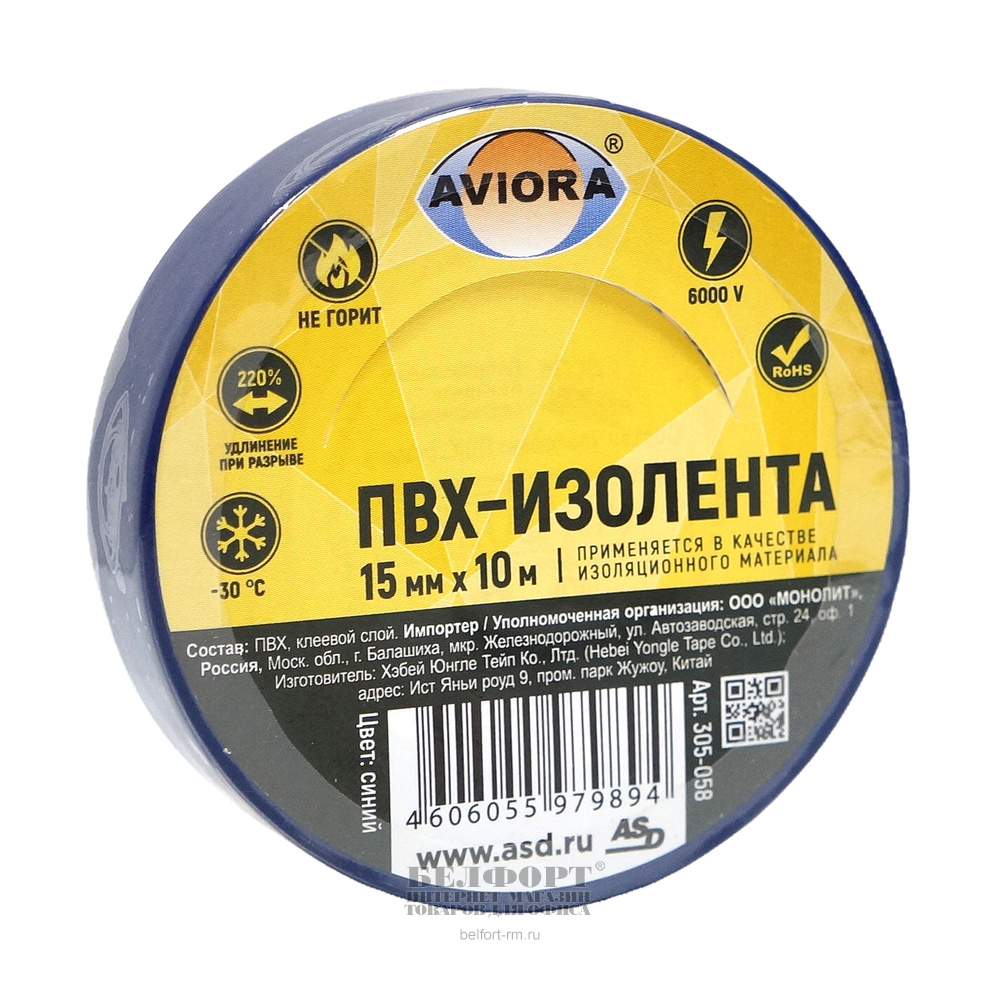 Изолента ПВХ, 10м*15мм, синяя, Aviora