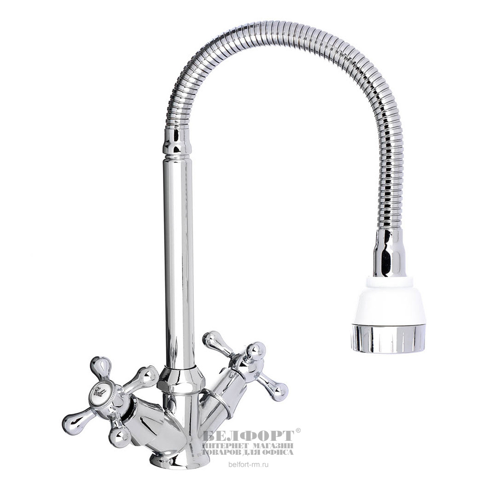 Смеситель для кухни, СоюзКран, SK01-F128, цинковый сплав, хром, гибкий излив, керам. кран-буксы 1, 2