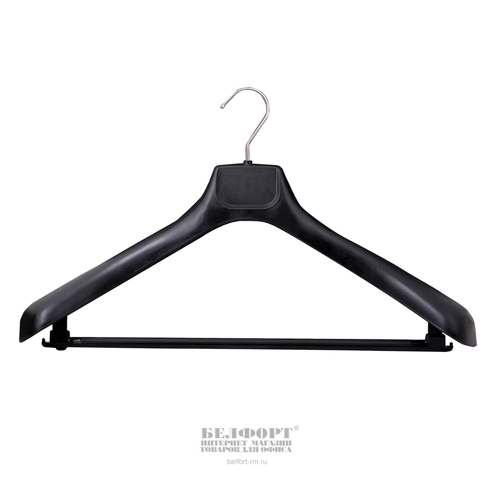 Вешалка (плечики) для верхней одежды, размер 50-52, ширина 48см, пластик, черная, анатомическая, крючки для бретелей, с перекладиной, Хэнгер Плюс