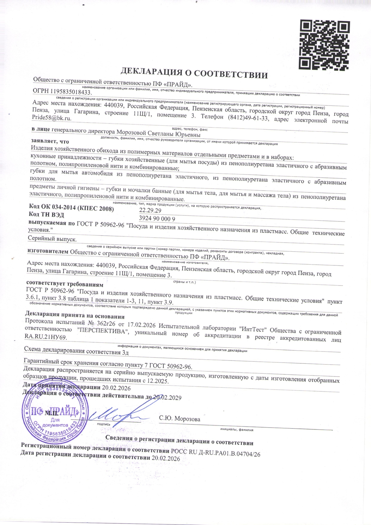 Губка для посуды, Pride, "Teflon", 9см*8см*3см, 2шт, поролон, фибра