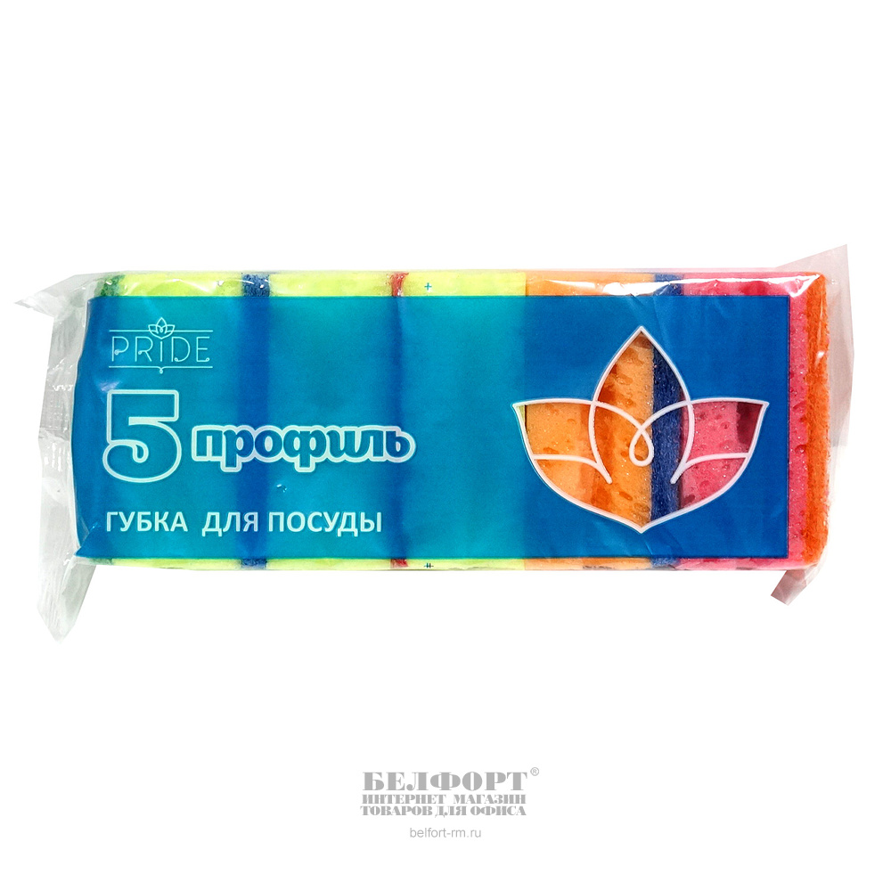 Губка для посуды, Pride, "Профиль-5", 8,5см*6см*4см, 5шт, пенополиуритан, анатомический вырез