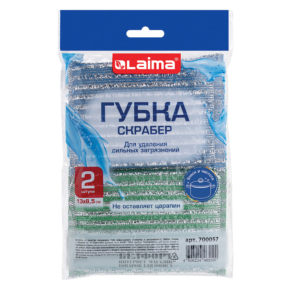 Добавить к сравнению179595Есть в наличии 22 уп.Губка (мочалка) для посуды, Laima, 13см*8,6см, 6шт, металл, по 15г