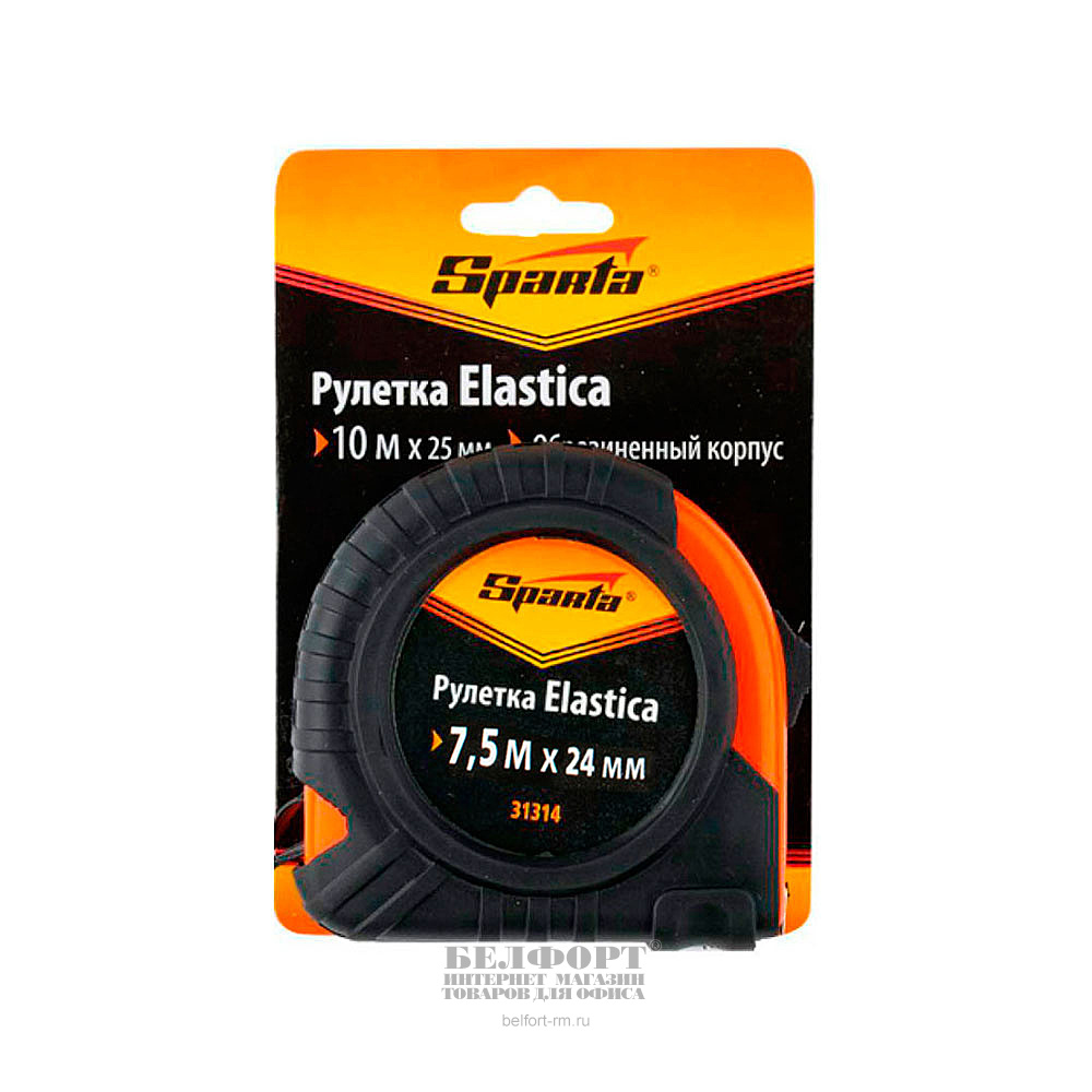 Рулетка Sparta, "Elastica", 7,5м*24мм, металл, пластик, с фиксатором, прорезиненный корпус