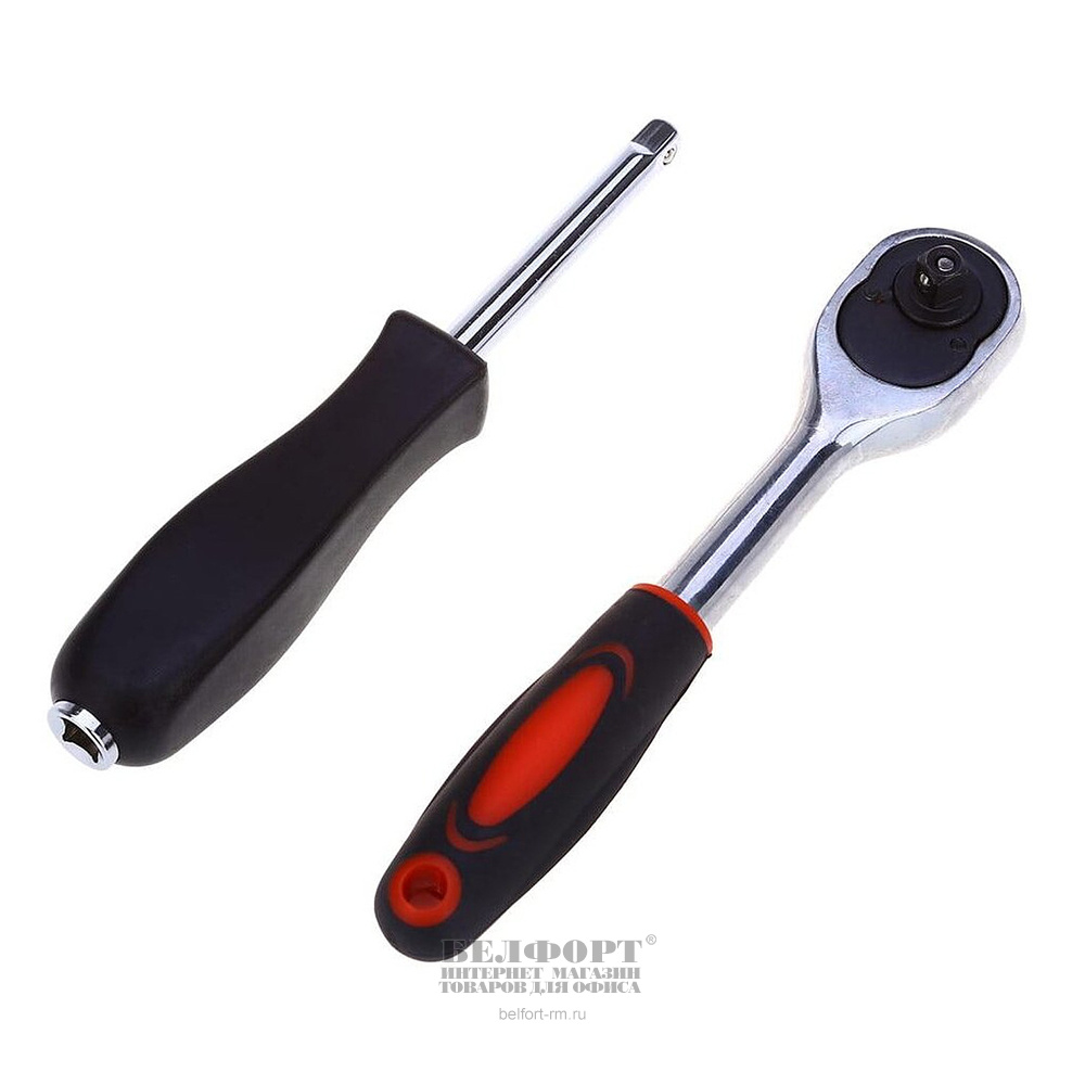 рукоятка реверсивная (трещотка) 1/4" (155 мм) с функцией быстрого сброса, храповый механизм с 24 зубьями, рабочий угол 15° — 1 штука;