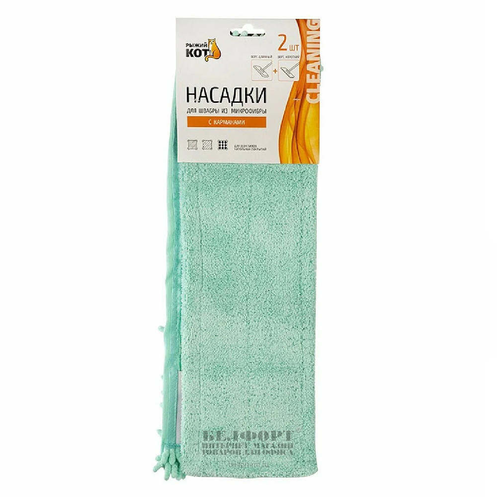 Насадка для швабры код 260370, Рыжий кот, микрофибра, 44см*14см, бирюзовая, 2шт, короткий и длинный ворс