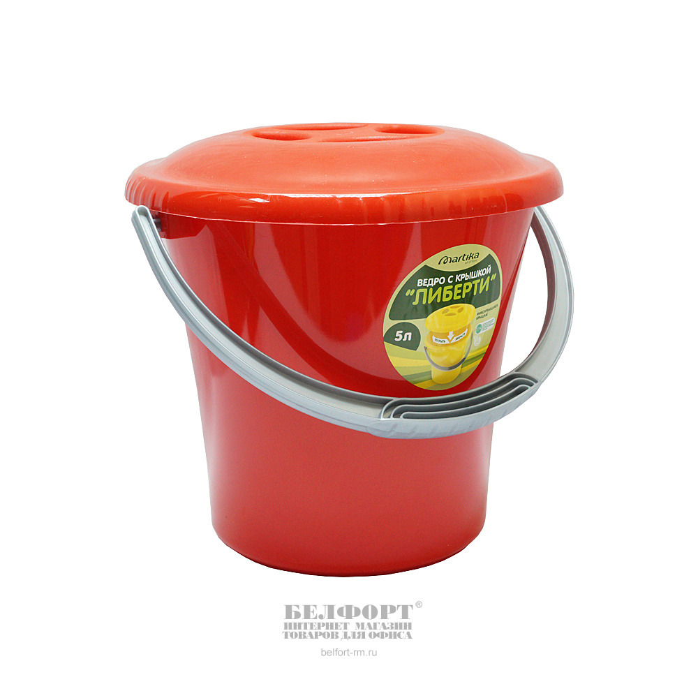 Ведро 5л, Мартика, "Либерти", пластик пищевой, красное с крышкой, с мерной шкалой