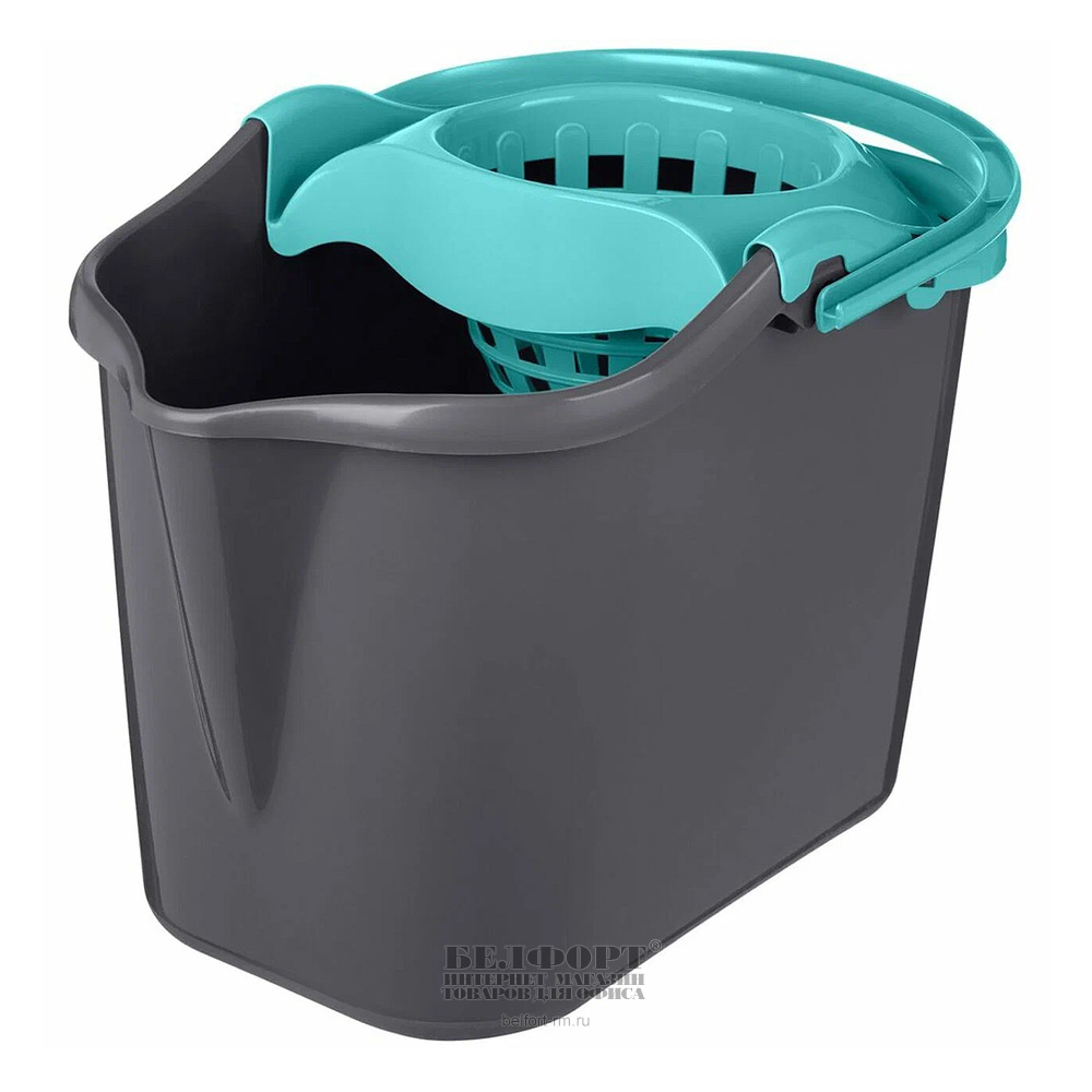 Ведро 13л, Idiland, "Grenada", пластик, серое, без крышки, с отжимом