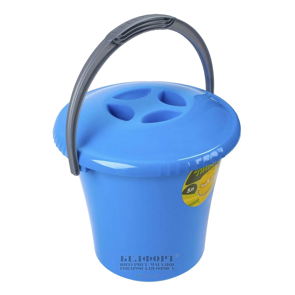 Ведро 5л, Мартика, "Либерти", пластик пищевой, голубое, с крышкой, с мерной шкалой
