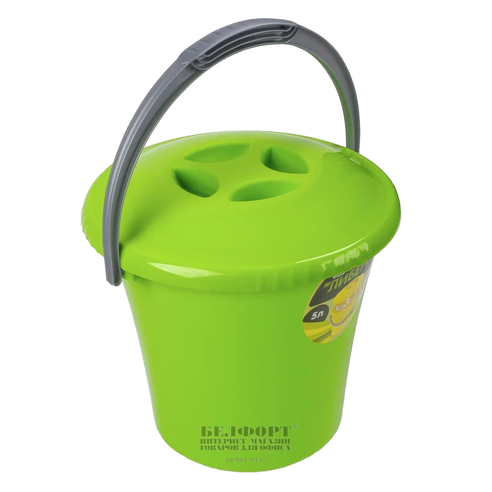 Ведро 5л, Мартика, "Либерти", пластик пищевой, салатовое, с крышкой, с мерной шкалой