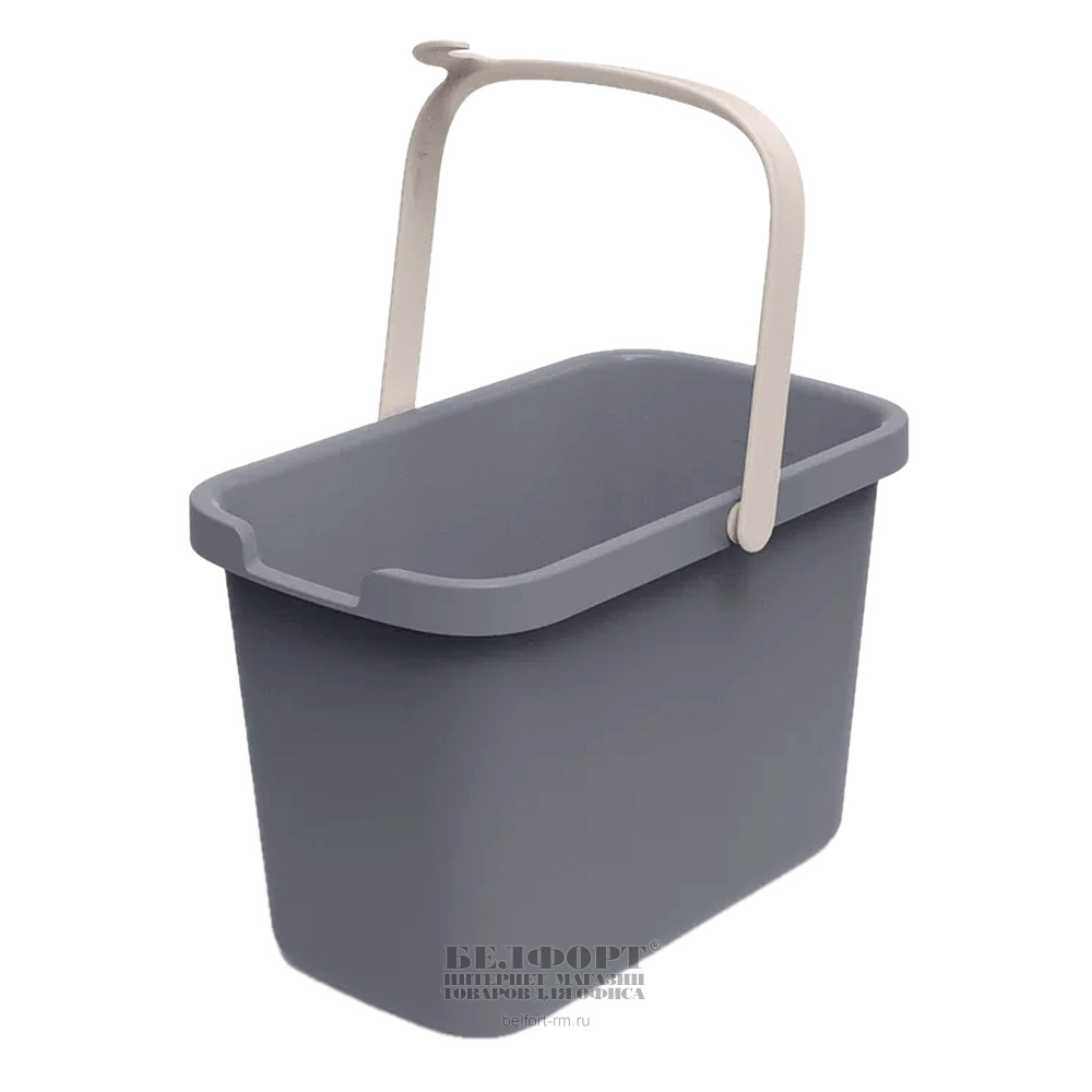 Ведро 9,5л, Полимербыт, "Smart", пластик пищевой, серое, без крышки, с мерной шкалой, со сливом, прямоугольное