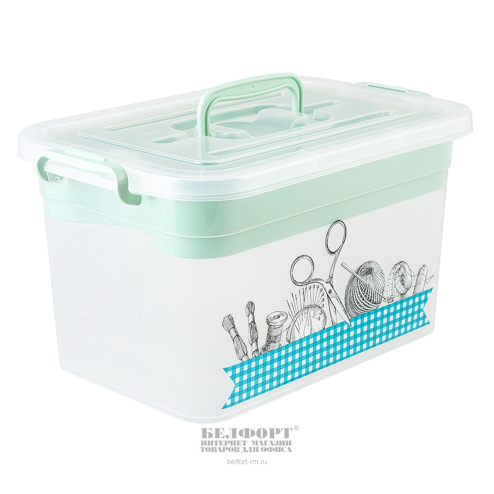 Контейнер с крышкой на защелках, для хранения, 10л, Полимербыт, пластик, 618г, с ручками, с вкладышем, 35,5см*23,5см*19см
