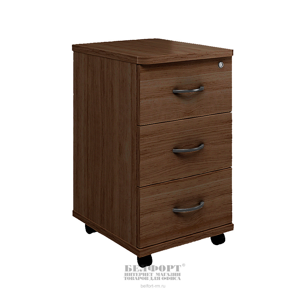 Тумба выкатная с 3-мя ящиками и центральным замком. Ящики установлены на шариковые направляющие. Изготовлена из ЛДСП. Цвет — ноче экко. Размер (Ш*Г*В): 400*480*705мм.