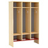 Шкаф для одежды 3-х секционный. Каркас шкафа изготовлен из ЛДСП. Основание выполнено из металлического перфорированного листа красного цвета, что позволяет разместить сушильное устройство. На одну секцию шкафа предусмотрены 2 крючка. Необходима доукомплектация дверками различных цветов. Цвет — клен. Размер (Ш*Г*В): 908*360*1370мм
